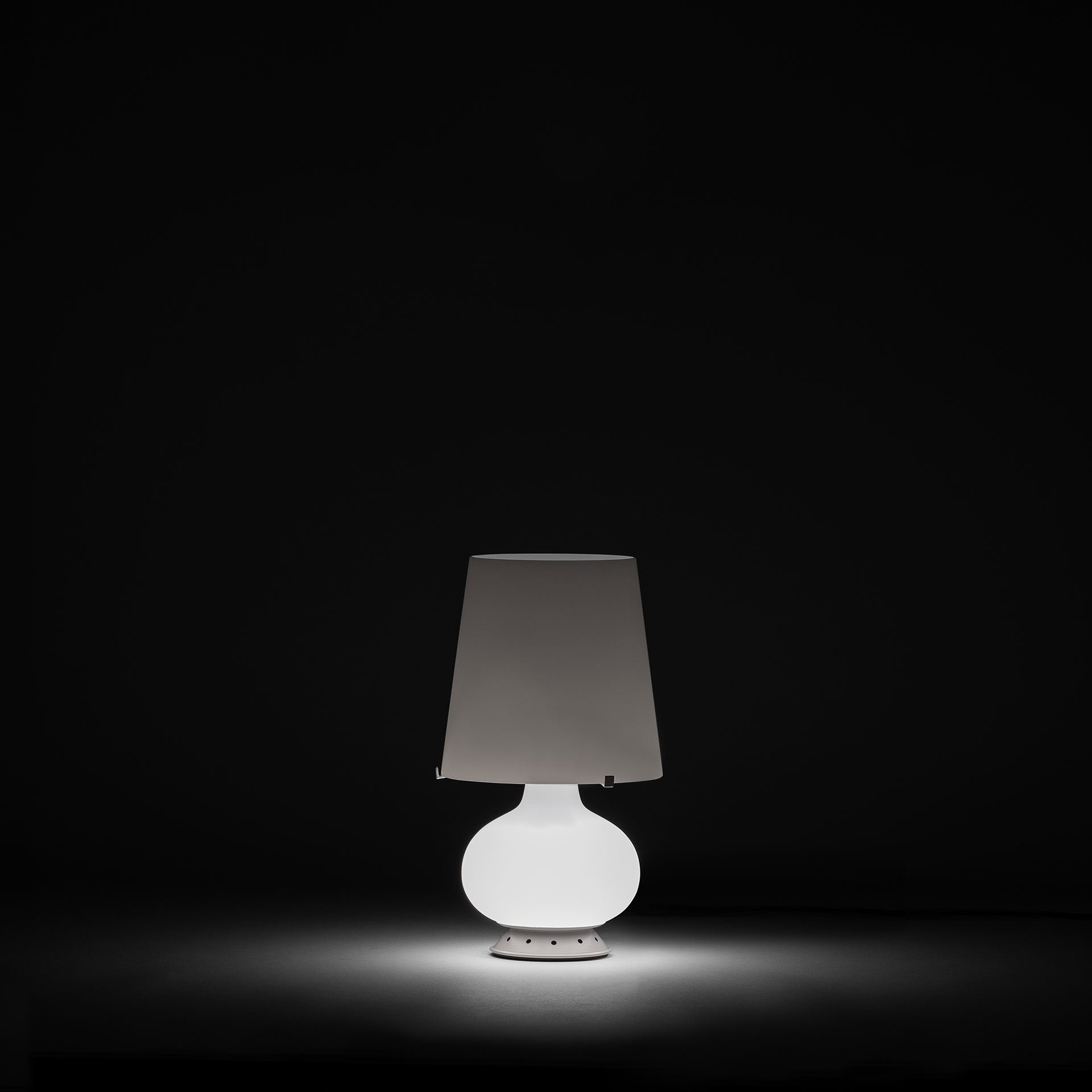 Lampshade and base in satin blown glass. Black power cord, switch and plug.