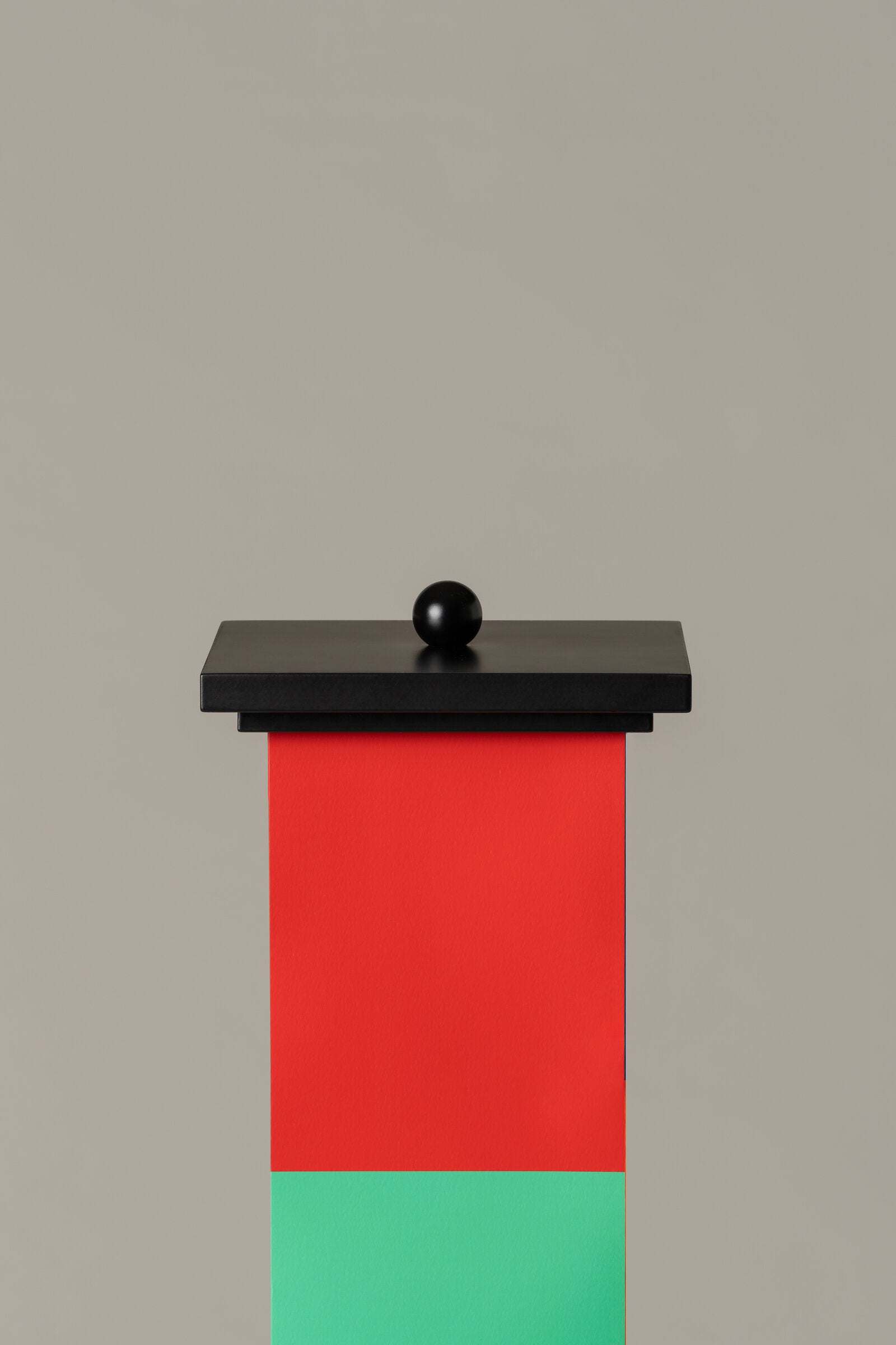 Base e coperchio superiore in legno verniciato nero.