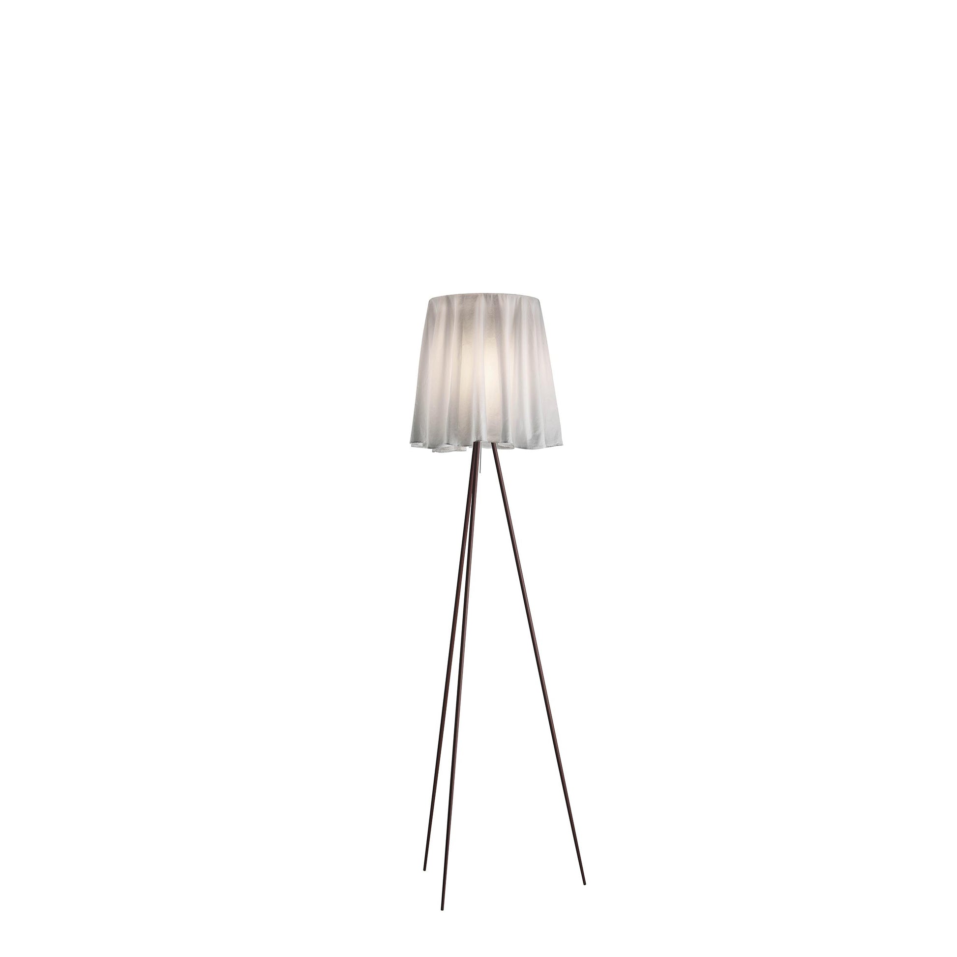 Lampada da terra a luce diffusa. Diffusore in tessuto ultraleggero. Steli in alluminio. Corpo portalampada in policarbonato espanso.