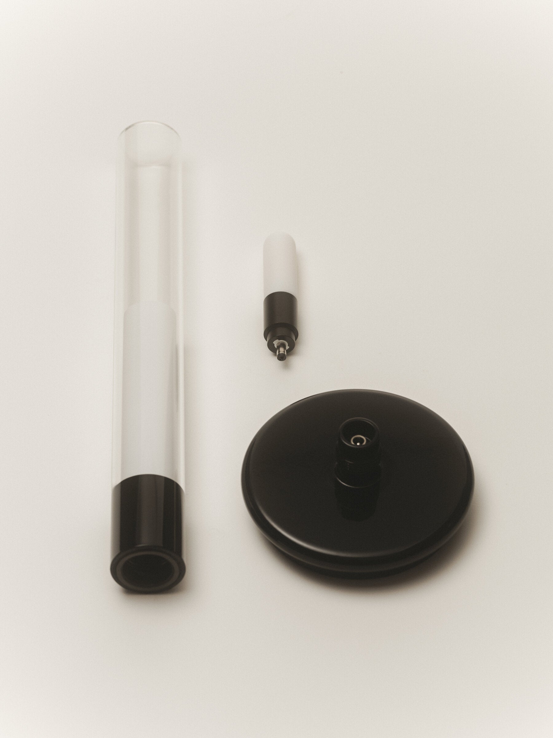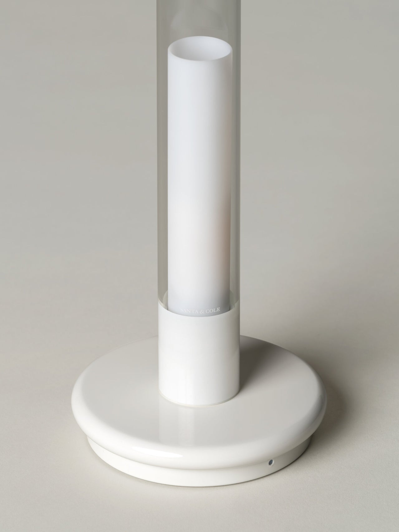 Vetro Pyrex trasparente , diffusore interno bianco traslucido .